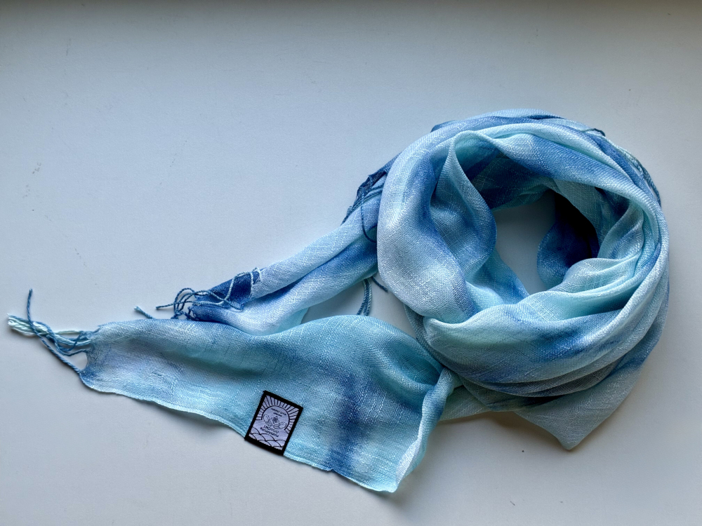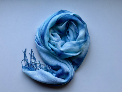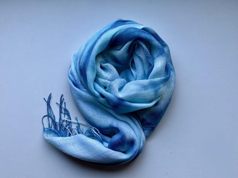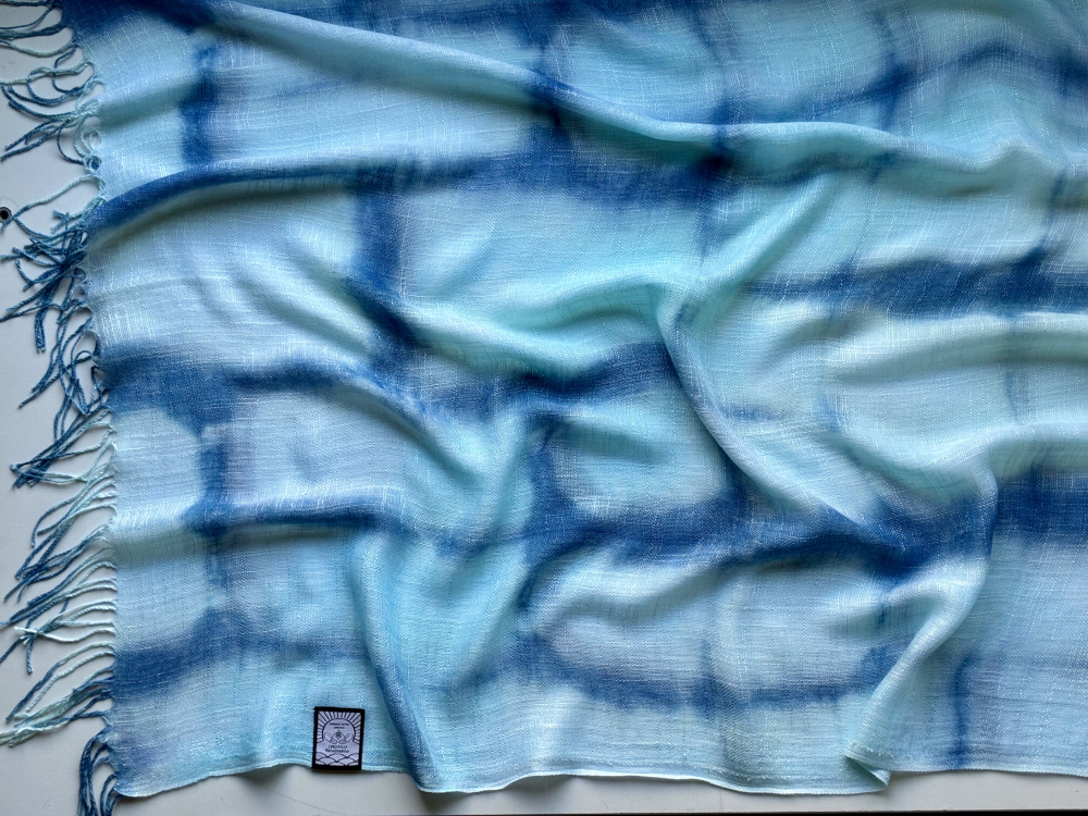 天然インディゴで染めたボタニカルストール(絞り柄アイスブルーB)