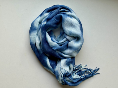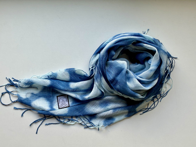 天然インディゴで染めたボタニカルストール(絞り柄アイスブルーD)