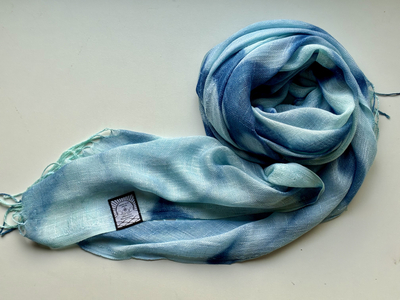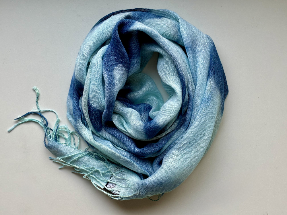 天然インディゴで染めたボタニカルストール(絞り柄アイスブルーE)