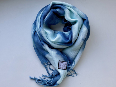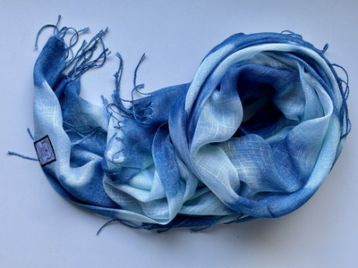 天然インディゴで染めたボタニカルストール(絞り柄ペパーミントB)