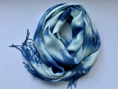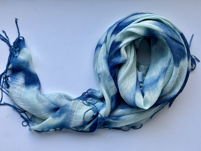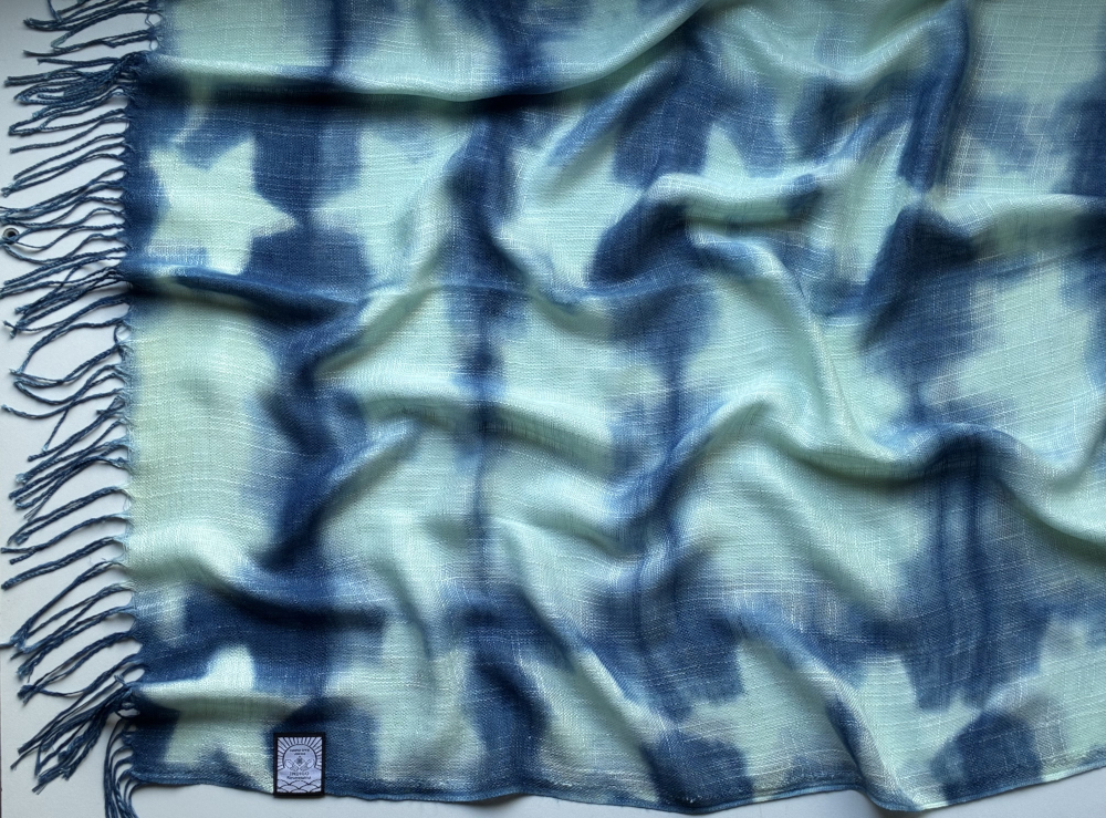 天然インディゴで染めたボタニカルストール(絞り柄ペパーミントD)