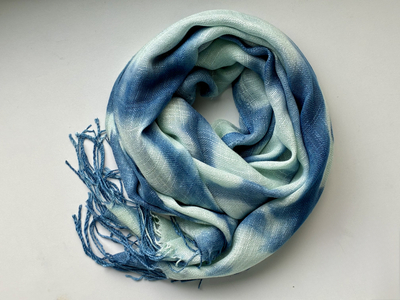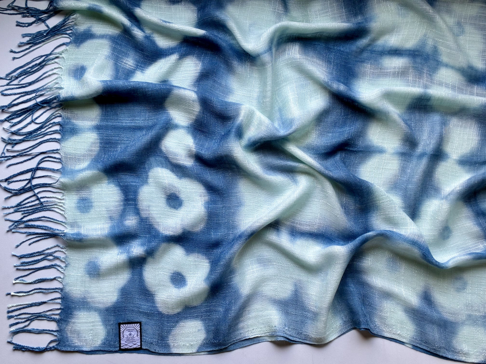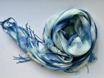 天然インディゴで染めたボタニカルストール(絞り柄ペパーミントE)