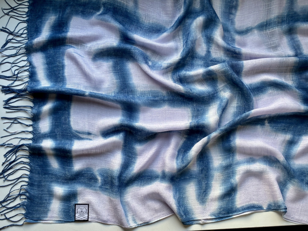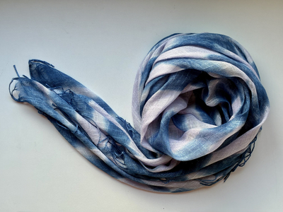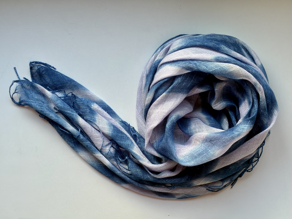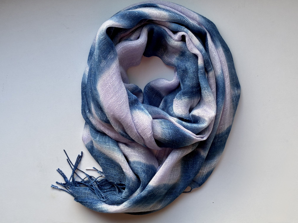 天然インディゴで染めたボタニカルストール(絞り柄ライラックB)