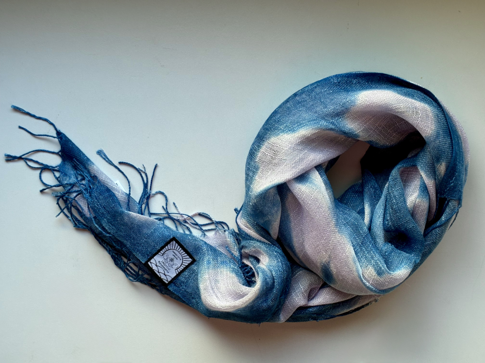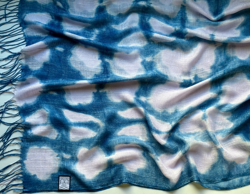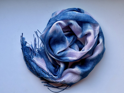 天然インディゴで染めたボタニカルストール(絞り柄ライラックD)